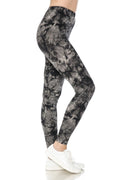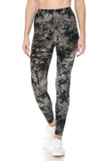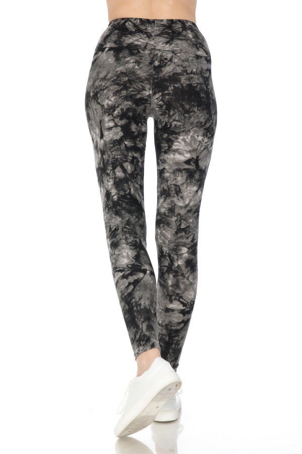 One Size Black/Grey tie dye print, super soft peach-skin leggings with a fitted elastic waist band