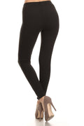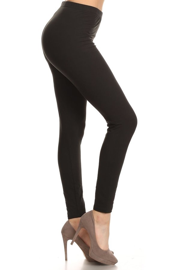 Solid Black high waist leggings in a fitted style, with an elastic waistband. OneSize: Fits up to Size 16/18