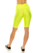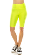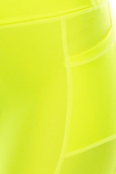 Yoga Waist Neon Yellow Biker Shorts w/ Pockets